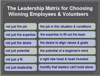 The Leadership Matrix for Choosing Outstanding Employees and Volunteers