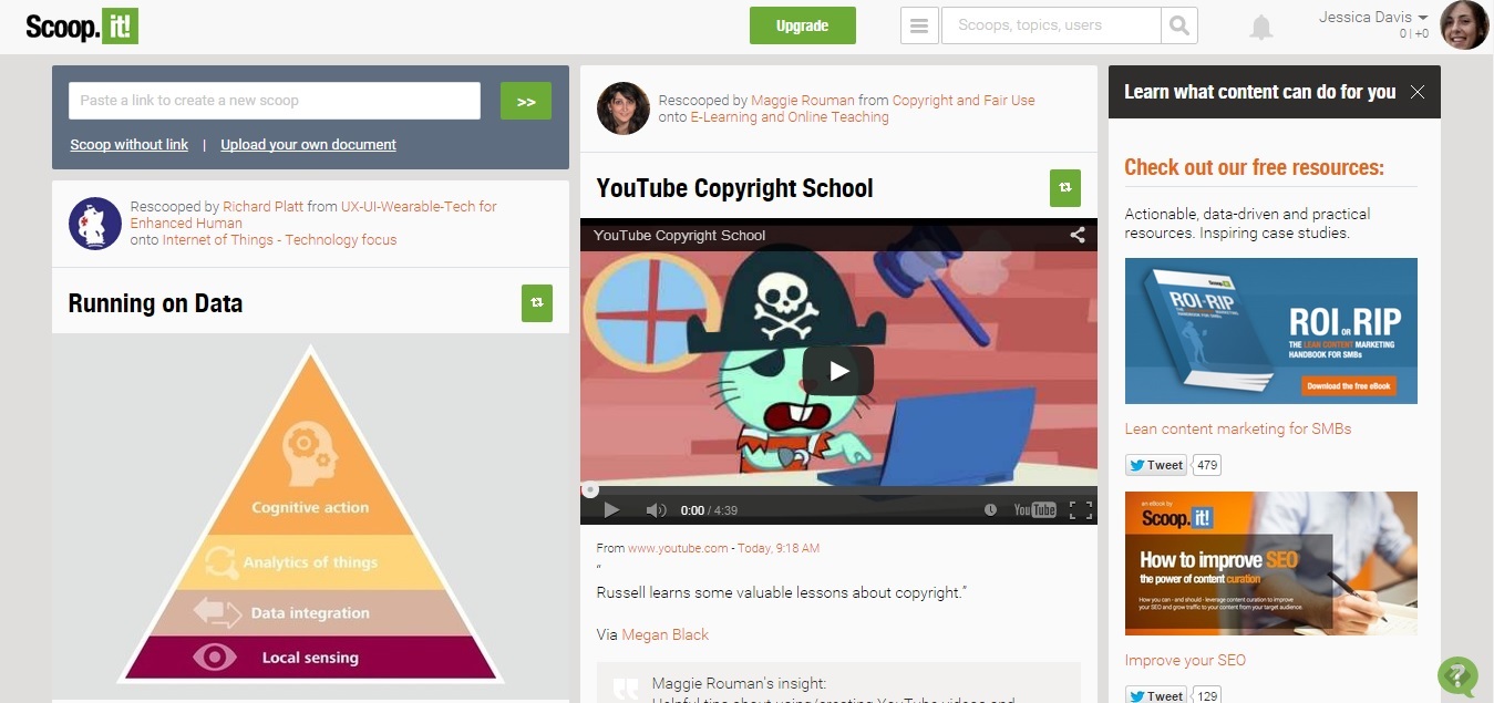 Scoop.it recommends articles for you to share in your social media circles based on the keyword search you run. Once you find the articles of your choice you can add a customized message to the article before posting it online for your audience. The good thing about scoop.it is it allows you to post on multiple platforms at one go.