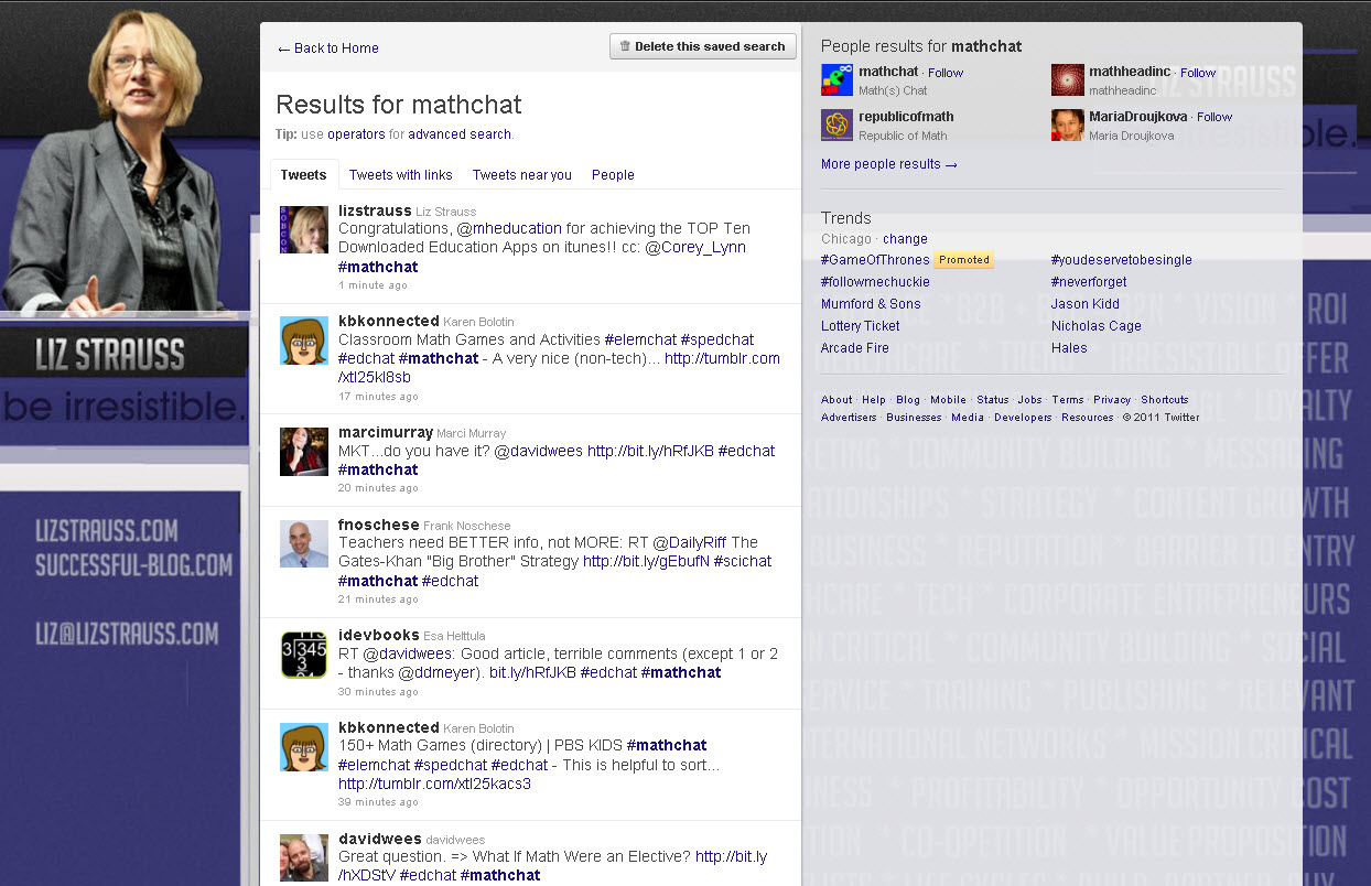 Then I’d point to a Twitter screen loaded to a hashtag … in the is case it was #mathchat And say, “let me show you what’s happening here.”
